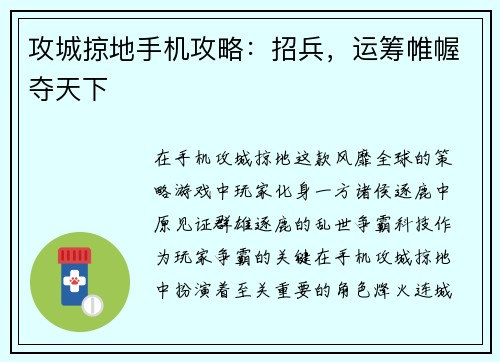 攻城掠地手机攻略:招兵,运筹帷幄夺天下