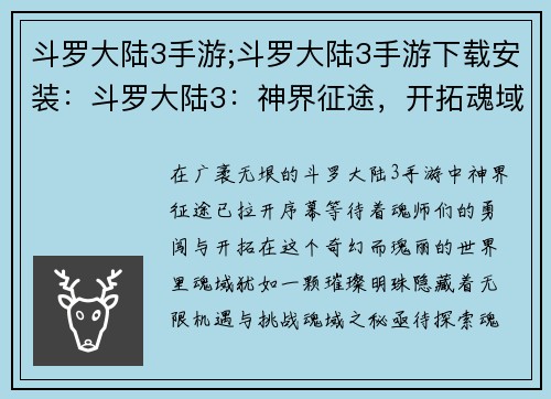 斗罗大陆3手游;斗罗大陆3手游下载安装:斗罗大陆3:神界征途,开拓魂域