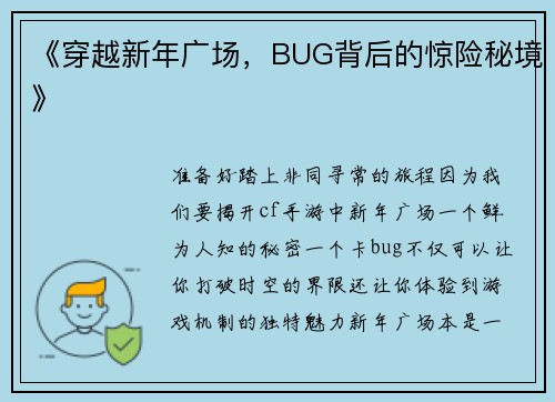 准备好踏上非同寻常的旅程,因为我们要揭开cf手游中新年广场一个鲜为人知的秘密。一个卡bug不仅可以让你打破时空的界限,还让你体验到游戏机制的独特魅力。龙八国际手机登录入口 新年广场本是一个热闹非凡的节日圣地,但隐藏在这个表面之下的是一个技术漏洞,可以让你在时空...